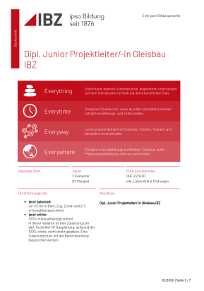 Factsheet Dipl. Junior Projektleiter/-in Gleisbau IBZ