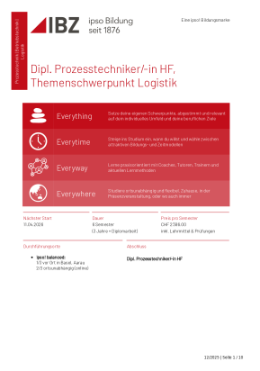 Factsheet Dipl. Prozesstechniker/-in HF, Themenschwerpunkt Logistik