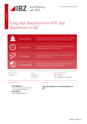 Factsheet Eidg. Dipl. Bauführer/-in HFP, Dipl. Bauführer/-in IBZ