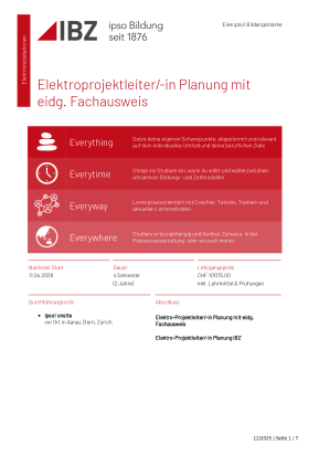Factsheet Elektroprojektleiter/-in Planung Mit Eidg. Fachausweis