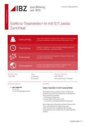 Factsheet Elektro-Teamleiter/-in mit EIT.swiss Zertifikat
