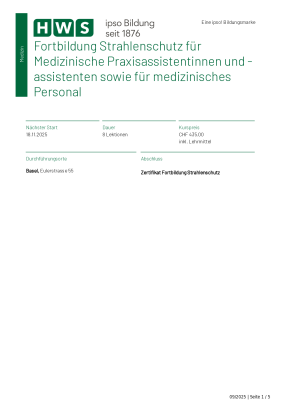 Factsheet Fortbildung Strahlenschutz für Med. Praxisassistenten/-tinnen und medizinisches Personal