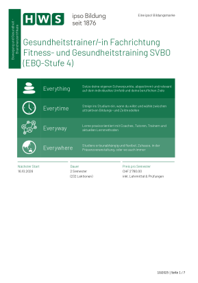Factsheet Gesundheitstrainer/-in Fachrichtung Fitness- und Gesundheitstraining SVBO (EBQ-Stufe 4)