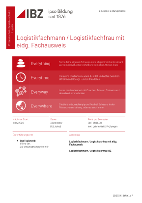 Factsheet Logistikfachmann / Logistikfachfrau Mit Eidg. Fachausweis