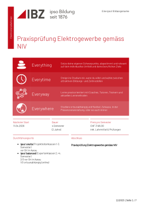 Factsheet Praxisprüfung Elektrogewerbe gemäss NIV